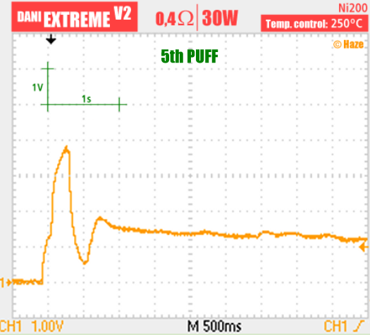 Since first puff we can see that is VERY GOOD! Voltage is regulated smoothly, with no oscillation.